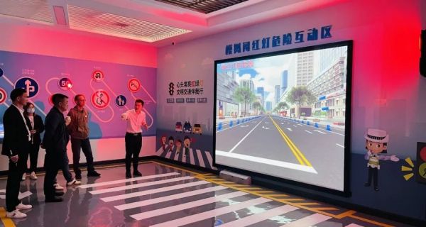 模擬闖紅燈危險(xiǎn)互動(dòng)區(qū)設(shè)置了真實(shí)的信號(hào)燈,當(dāng)信號(hào)燈為綠色時(shí),參觀者可以正常通行,但當(dāng)信號(hào)燈為紅色時(shí),系統(tǒng)檢測(cè)到有行人通過時(shí),畫面將呈現(xiàn)慘烈碰撞場(chǎng)景并伴有車輛緊急剎車聲效,讓參觀者切身體驗(yàn)到闖紅燈的危害,特別對(duì)于當(dāng)前的手機(jī)低頭一族,大家需時(shí)刻保持文明交通安全的觀念。